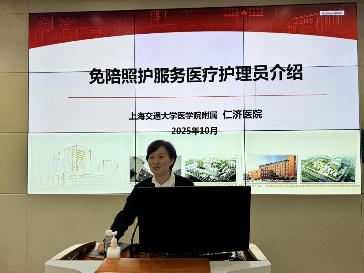 接着,上海交通大学医学院附属仁济医院护理部主任奚慧琴登台分享。她结合国家“免陪照护服务”的推进,详细分析了三甲医院在此新模式下面临的机遇以及对专业医疗护理员的迫切需求,为同学们指明了新的职业方向。