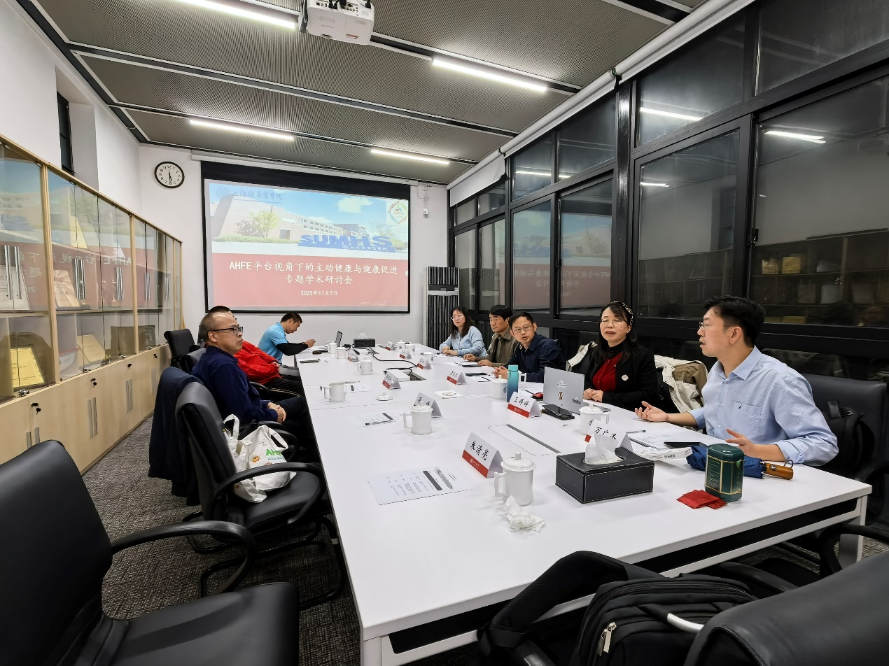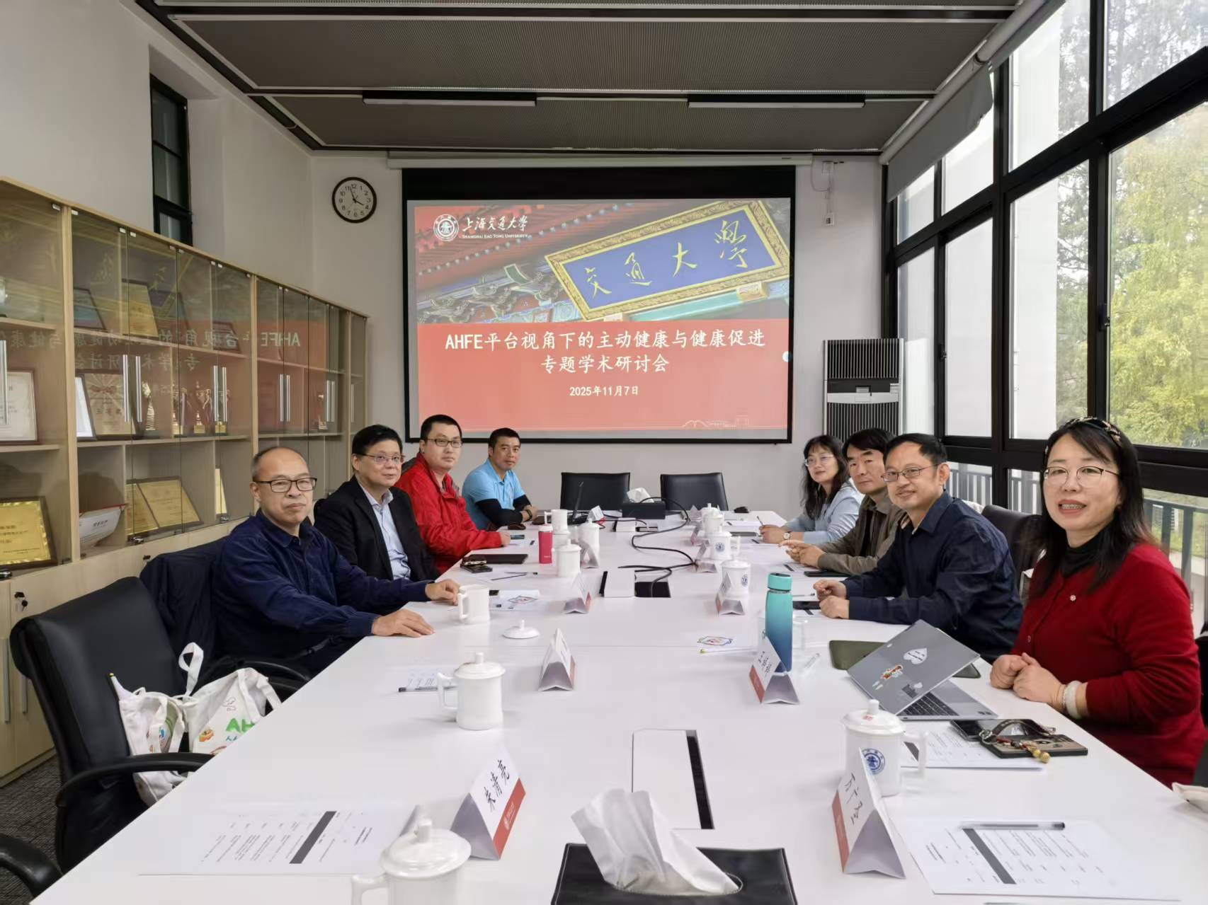 冬藏万物,智启新篇。2025年11月7日立冬午后,上海交通大学徐汇校区新建楼内思想火花迸发,智慧暖流涌动——以“AHFE平台视角下的主动健康与健康促进”为主题的学术研讨会在此成功举行。本次会议汇聚了来自上海健康医学院AHFE平台的万广圣教授、郑国华教授、邵晓军教授、张世翔教授、曹月柱教授等校内核心成员以及上海交通大学健康长三角研究院院长助理蒋锋教授等校外成员。大家齐聚一堂,共同探讨学校在“十五·五”规划背景下,如何有效发挥平台作用,推动主动健康与健康促进领域的产教研融合与协同育人机制构建等关键议题。本次会议由郑国华教授主持。