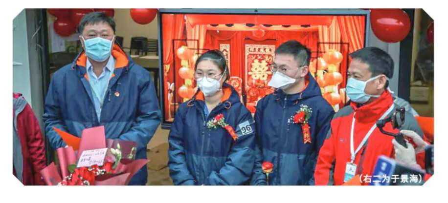 据新郎于景海透露,春节之前,他带着周玲亿回老家过年,在路上接到了支援武汉的通知,经过商量,他们在老家待了一天就返回上海,随时准备驰援武汉。于景海说,“到了武汉,我们俩不在一个护理小组,说实话,她是普通病房出身,我一开始对她还有点担心。毕竟监护室和病房工作不一样,我怕她不熟悉,会有压力。然而,我的担心是多余的,经过训练,她熟练地穿上防护服,进了监护室,很快进入角色,照顾病人、吸痰、打针、上补液、生活护理等等,我们的工作也都有条不紊的进着。”
