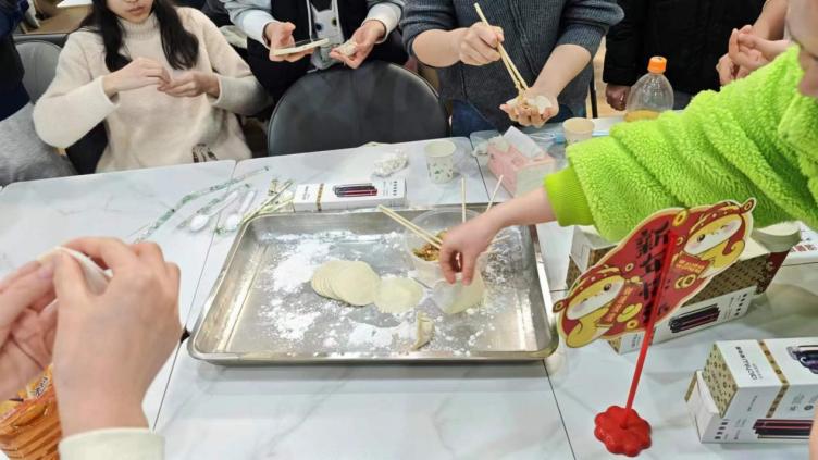活动在医院食堂举行,墙壁上悬挂着一串串满载祝福的语句,红底黑字的对联醒目地张贴于重要位置,每张餐桌都矗立着标有“新年快乐”的立牌,就连电视机上也精心贴上了福字贴纸,到处洋溢着暖暖的喜庆色彩。猜灯谜活动中,大家积极开动脑筋,互相讨论,抢着答题,现场气氛热烈,实习学生不仅增长了知识,还进一步加深了对传统文化的了解。包饺子活动在食堂师傅的指导下进行,大家围坐在一起,边包饺子边聊天,气氛温馨而融洽,看着自己亲手包出的饺子,学生们心中都充满了成就感和幸福感。