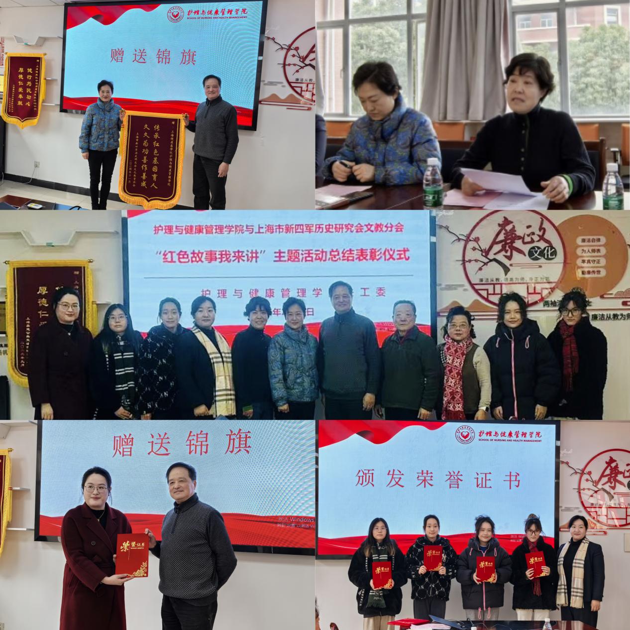 2025年2月25日中午,上海健康医学院护理与健康管理学院关工委分会与上海市新四军历史研究会文教分会联合举办的“红色故事我来讲”主题活动总结表彰大会在北苑6号楼303会议室隆重举行。上海市新四军历史研究会文教分会会长喻业聪、会员赵保平、岳延安,校离退休党总支副书记、关工委副主任郁建新、学院党总支书记、关工委分会主任郭戎静、学院党总支副书记、关工委分会委员薛文正,以及“红色故事我来讲”课题组学生代表许惠惠、许珈李、谢炎、金怡佳等共聚一堂,回顾活动成果,共话红色传承。