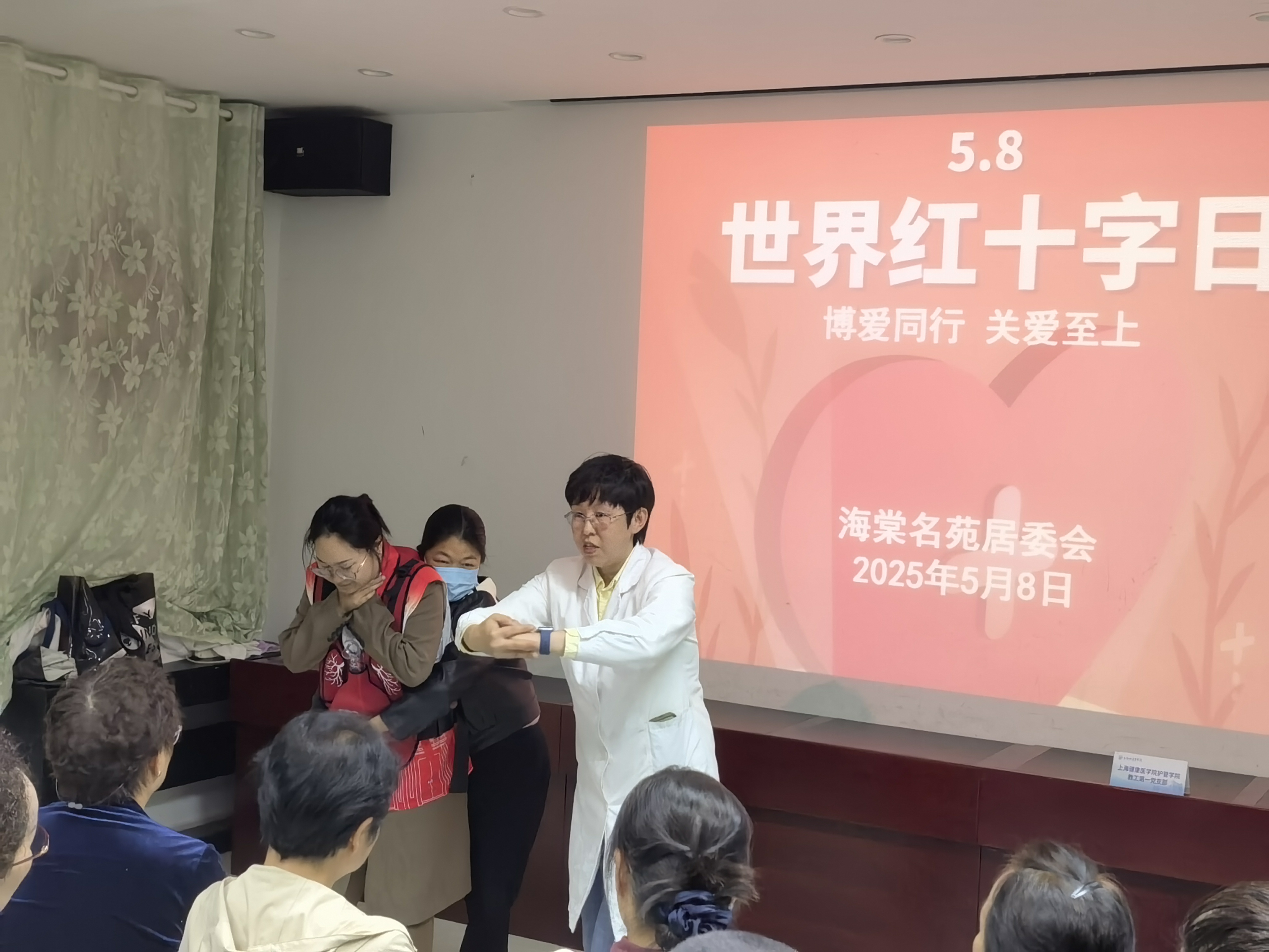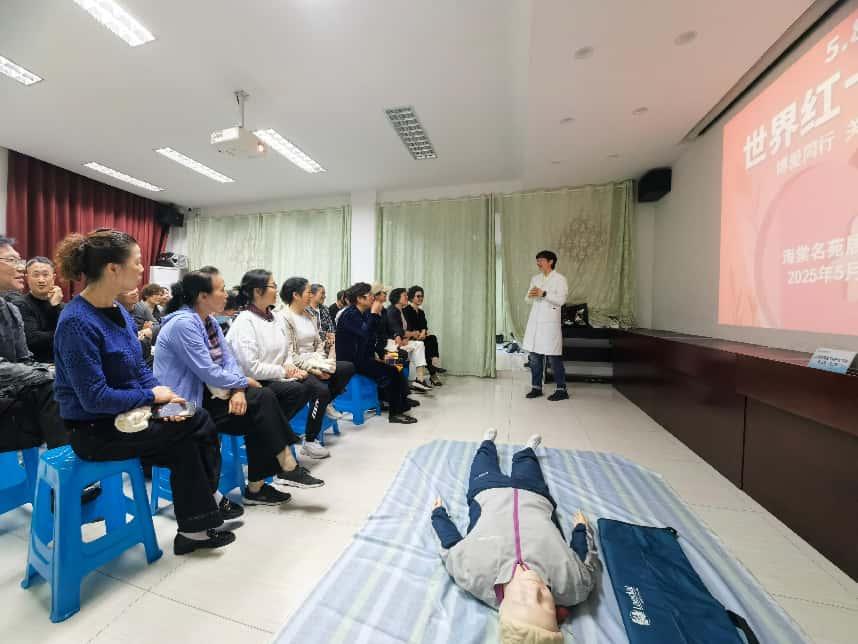 为弘扬“人道、博爱、奉献”的红十字精神,充分发挥样板党支部的辐射引领作用,提升社区居民的自救互救能力,2025年5月8日下午2点,上海健康医学院护管学院教工第一党支部与浦东新区周浦镇海棠名苑社区居委会联合开展了一场以“急救科普进社区”为主题的党建活动。此次活动吸引了众多社区物业人员及小区居民踊跃参与,现场气氛热烈。