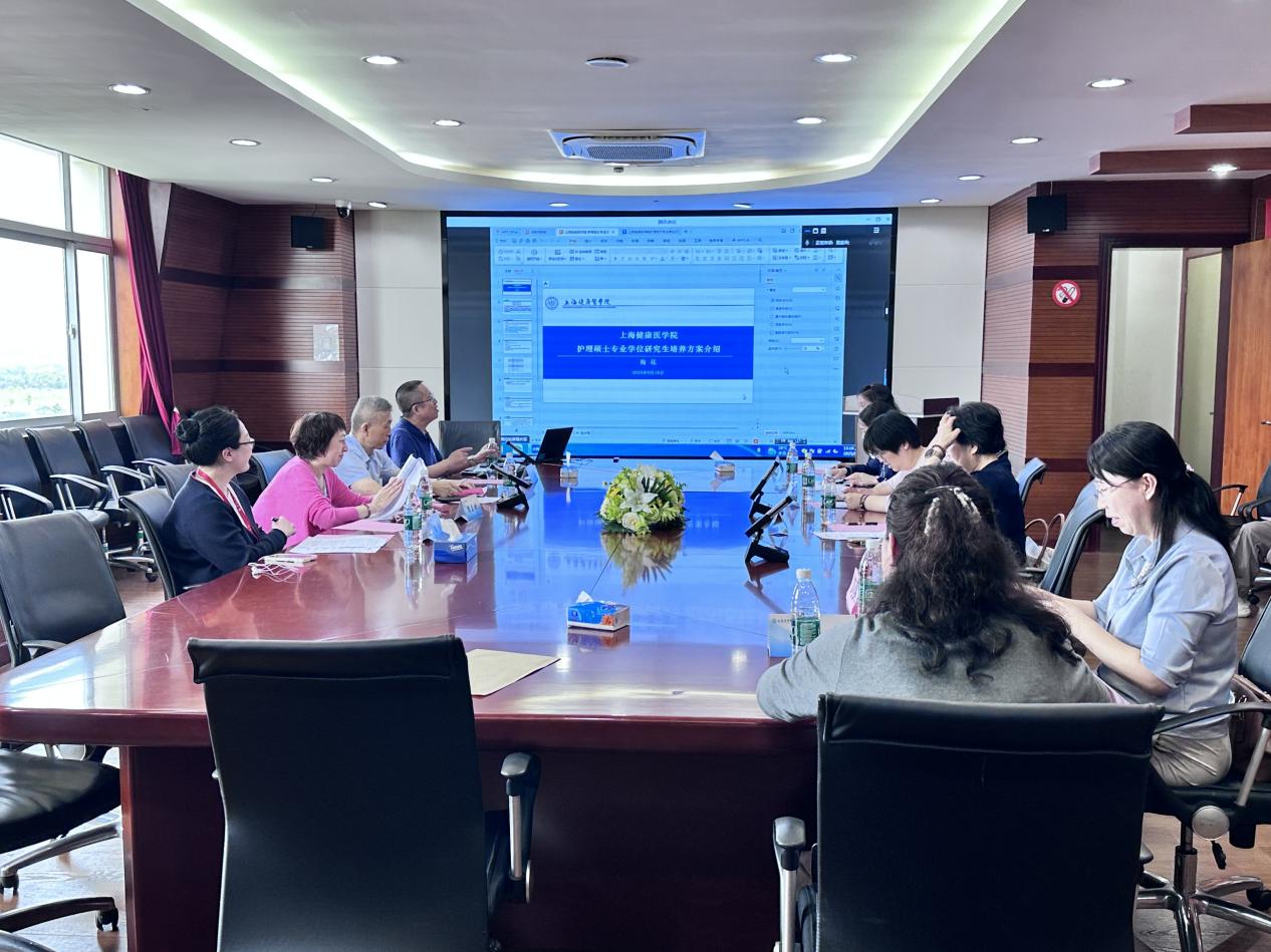 2025年9月18日下午,上海健康医学院护理与健康管理学院在北苑9号楼808会议室召开护理硕士专业学位研究生培养方案论证会。会议由学院院长朱爱勇主持,校学位办公室主任刘文庸出席。论证专家包括海军军医大学博士生导师、国务院学位委员会第三届护理学学科评议组召集人周兰姝教授,上海杉达学院国际医学技术学院院长徐燕教授,上海中医药大学附属曙光医院护理部主任栾伟,上海交通大学附属仁济医院护理部总带教阮春凤,上海长海医院护理专硕研究生管理助理员翁艳秋,上海健康医学院附属周浦医院护理部主任田蓓,上海市浦东新区公利医院刘爽护士长,上海健康医学院附属崇明医院郁飞飞护士长等。
