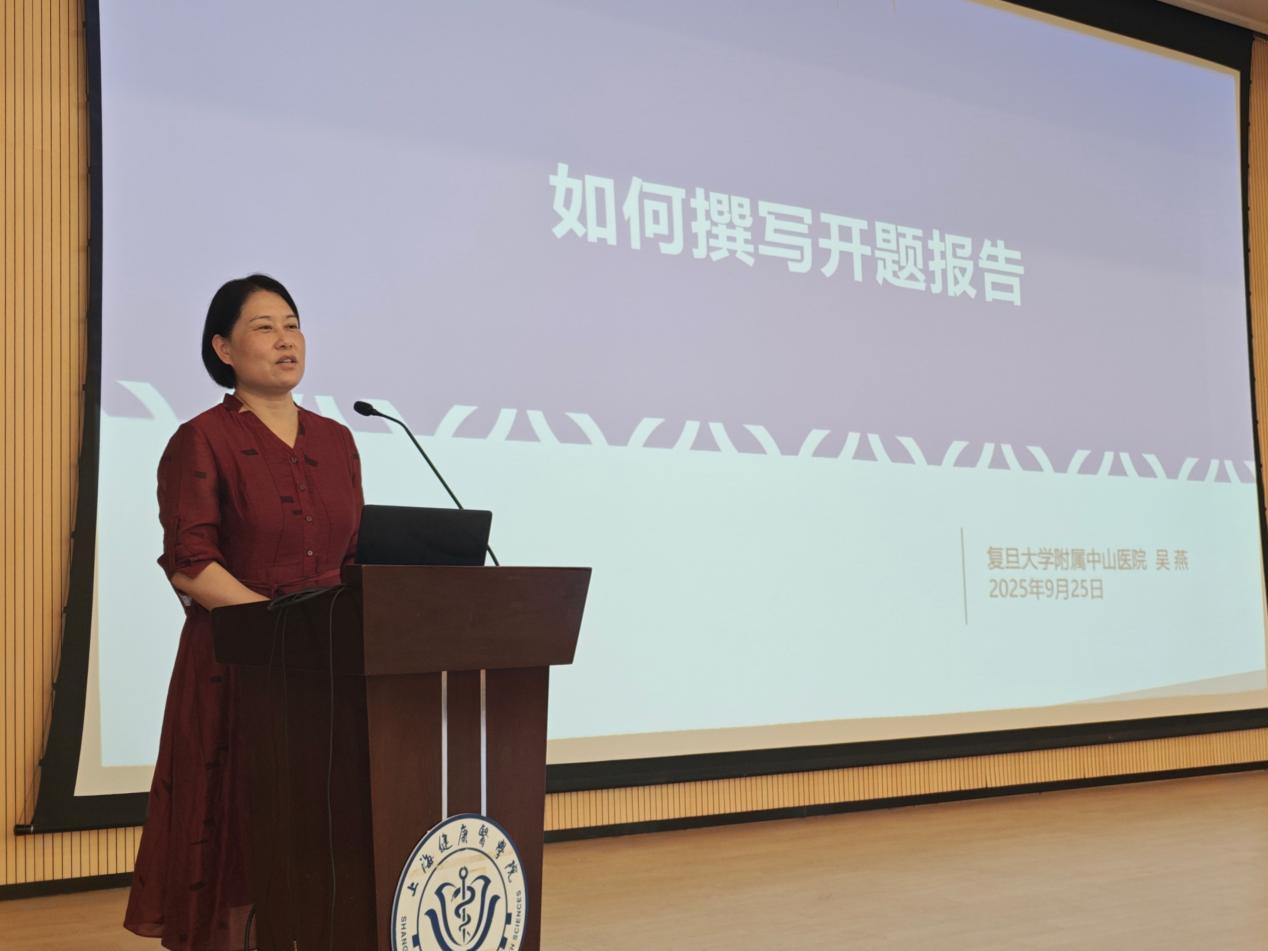 为帮助2026届本科毕业生掌握把握毕业论文写作规范,有效解决论文撰写过程中的疑难问题,上海健康医学院护理与健康管理学院教学管理办公室精心策划了首个“本科生毕业论文写作指导”系列专题讲座。2025年9月25日13:30,系列讲座首场——“如何撰写开题报告”专题辅导在学校东苑4号楼一楼300人报告厅顺利举行。本场讲座特邀复旦大学附属中山医院护理教育科科长吴燕老师担任主讲嘉宾。