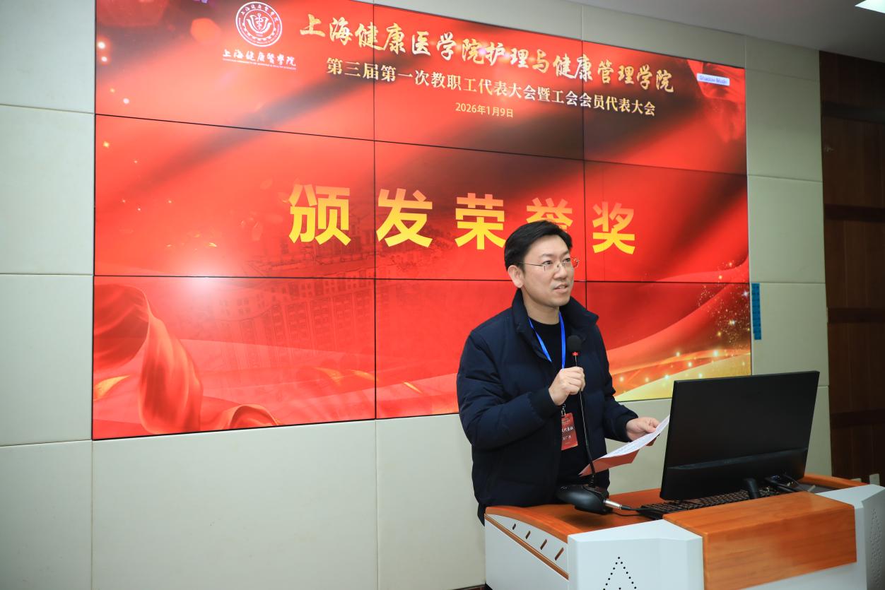 2026年1月9日,护理与健康管理学院2025年度表彰大会在9号楼108室召开。学院党政领导及全体教职工参加会议。大会由学院党总支副书记、院长朱爱勇主持。