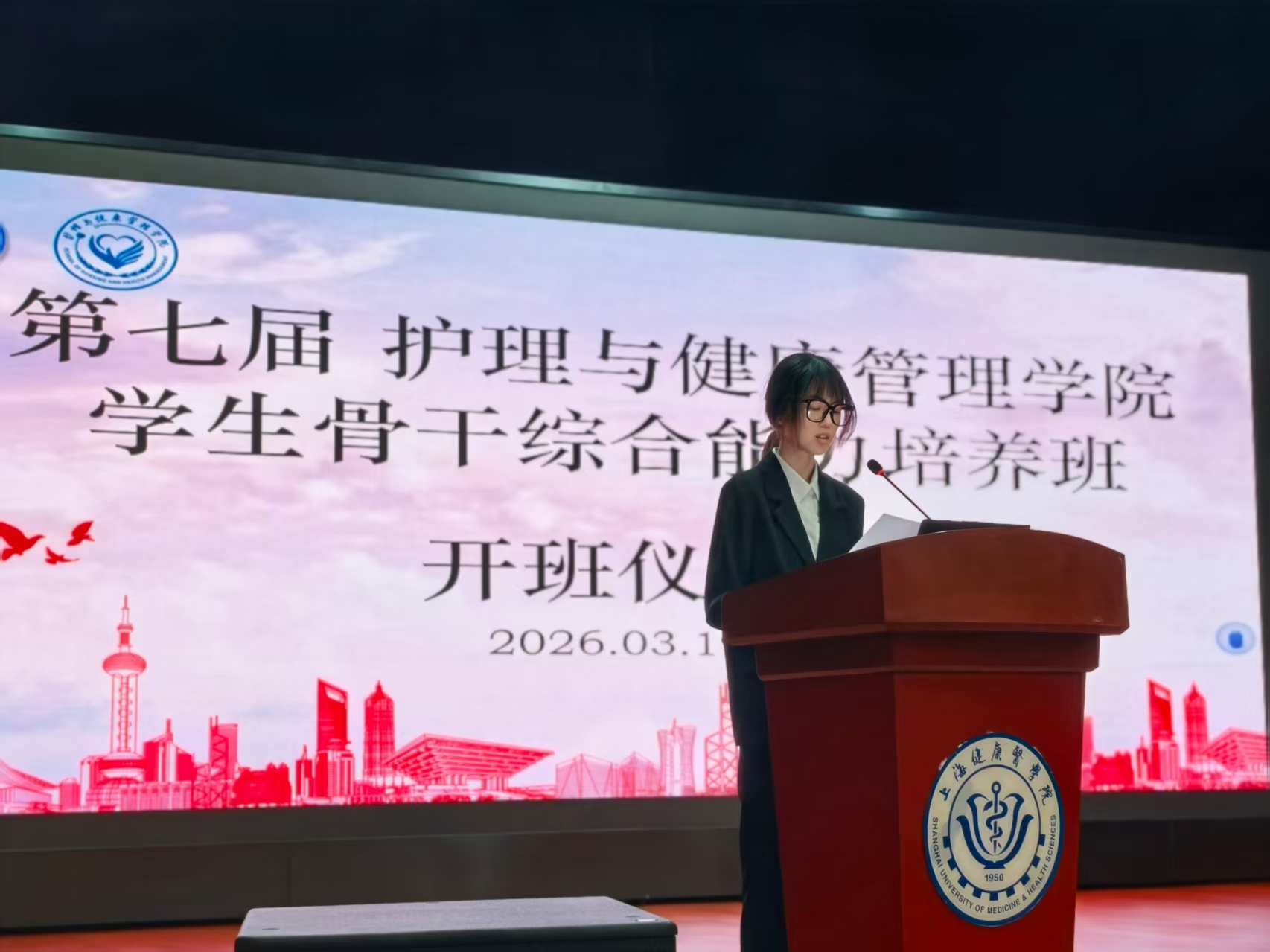 2026年3月19日下午,护理与健康管理学院第七届学生骨干综合能力培养班开班仪式于北苑400人报告厅顺利举行。护理与健康管理学院团总支副书记史可悦老师、学生会主席团成员、各部门部长及全体综培班学员共同出席本次仪式。