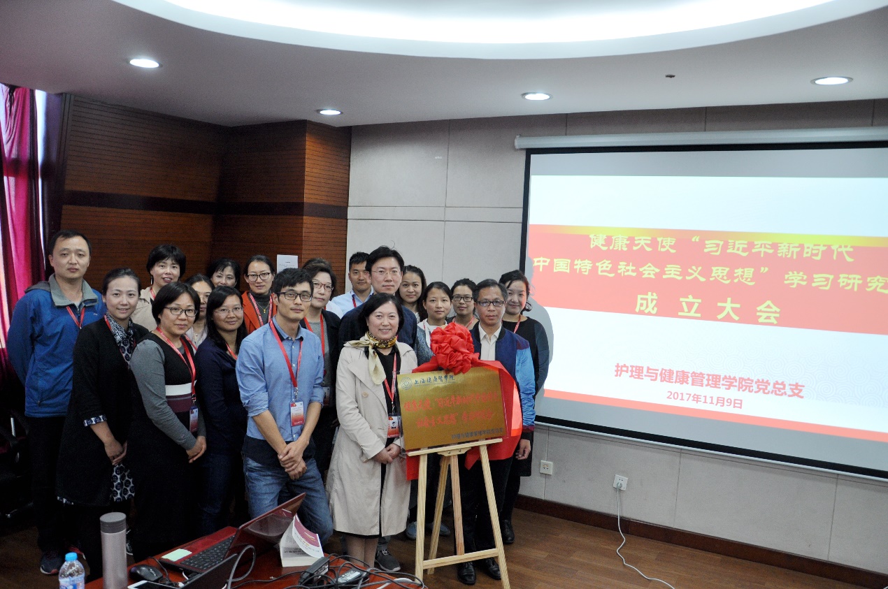 11月9日,护理与健康管理学院在浦东校区北苑9号楼808举行健康天使习近平新时代中国特色社会主义思想学习研究会揭牌仪式。护管学院党政领导、各支部书记、总支委员、民主党派教师代表、教职工代表共同见证了学习研究会的成立。
